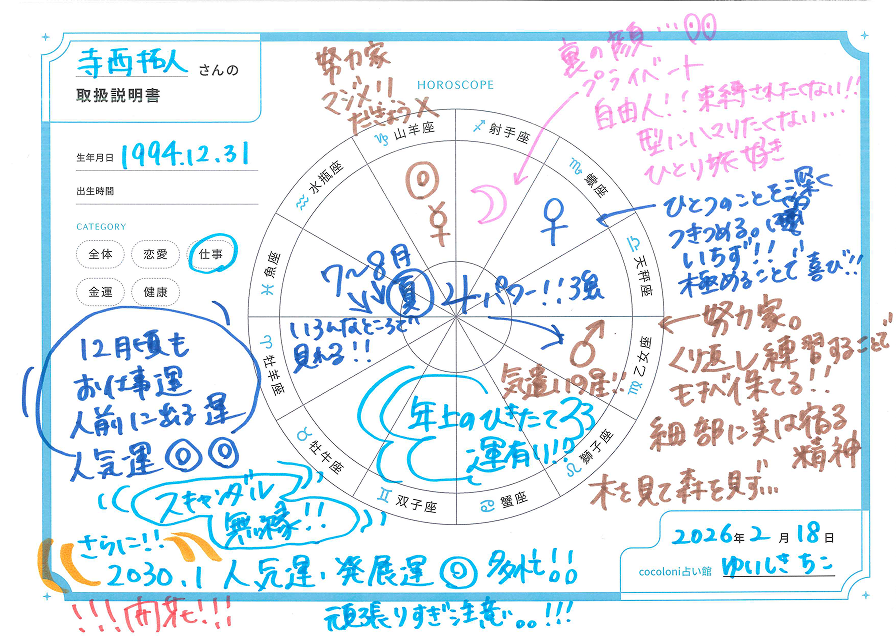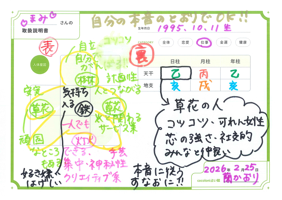 あなたの「今知りたいこと」に合わせて内容を厳選。自分、恋人、大好きな推し。SNSで話題の4タイプ診断では辿り着けない「本当の姿」を1枚のトリセツにギュッと凝縮します。